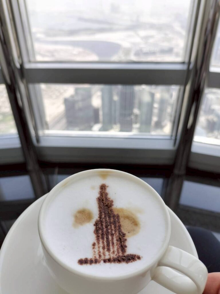 ソフトドリンクは飲み放題で、カプチーノは泡の上にブルジュハリファが描かれた特別仕様!