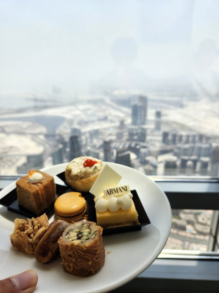 世界一高い建造物として有名なブルジュ・ハリファの154階、地上585mの高さに位置するスカイラウンジで、ドバイの絶景を見ながらドリンクやスイーツを楽しむことができ、ドバイ旅行で必見のスポットです。