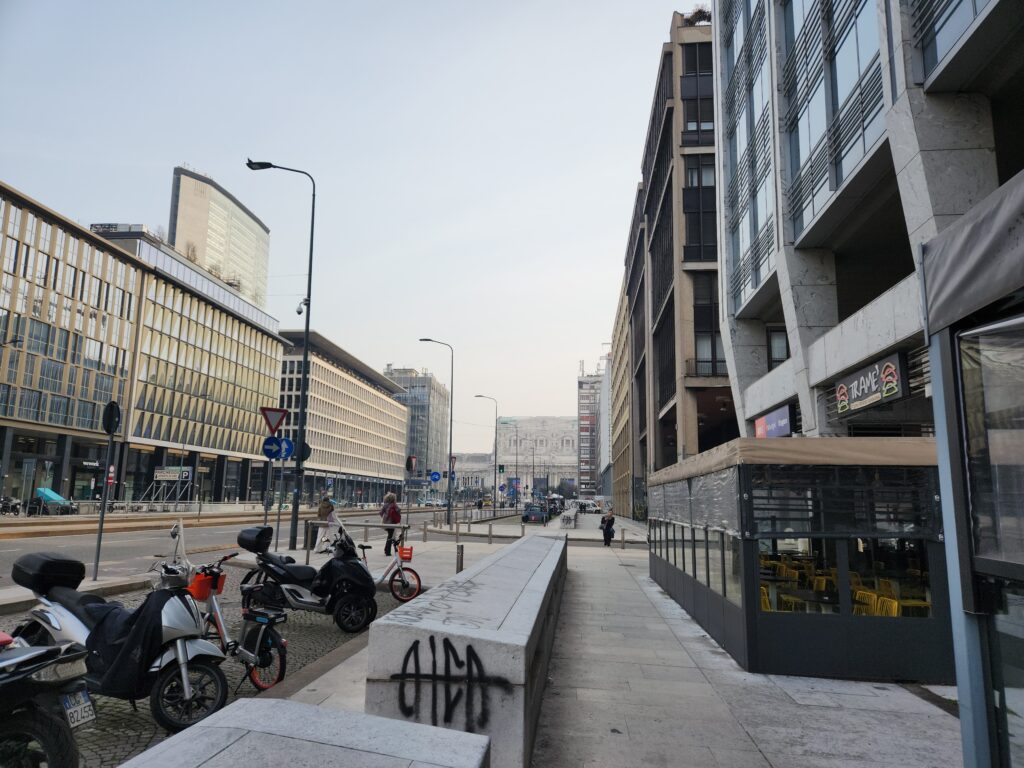 奥に見えているのがミラノ中央駅です。本当にでかいので、見え始めてから着くまで20分歩き続けました。