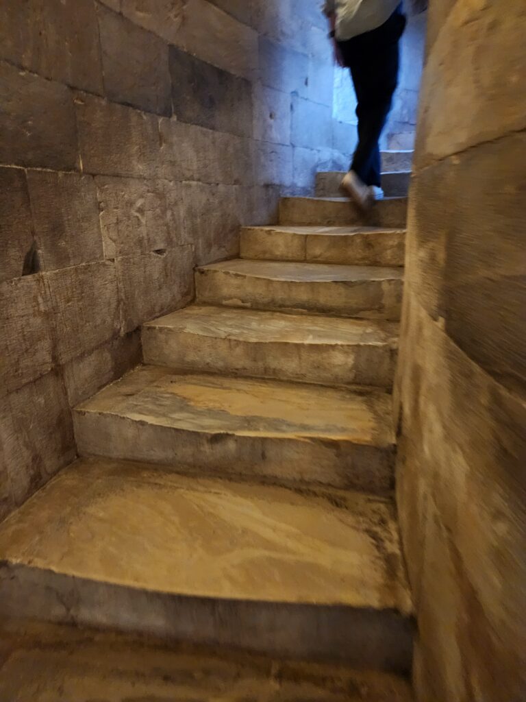 硬い石の階段のはずなのにかなり削れていて、いったい何人の人が登ったんだと思いました。