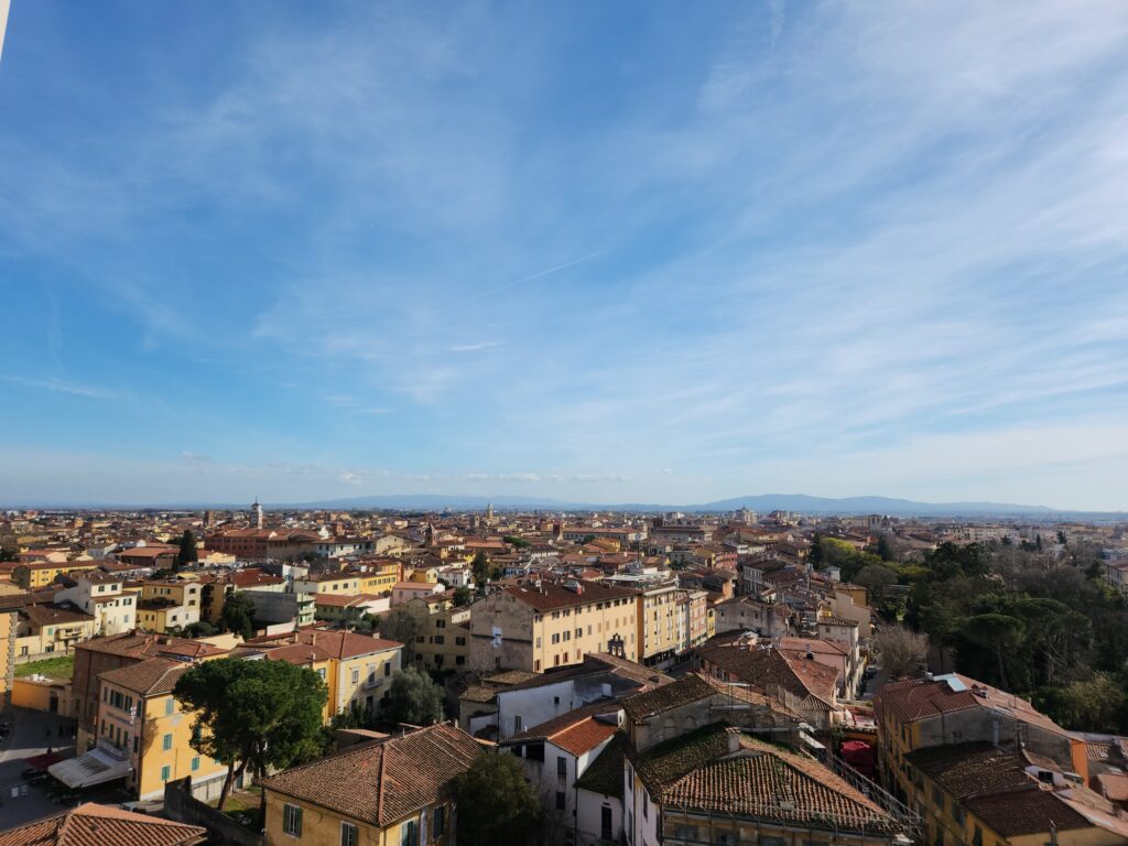 背が低く、黄色系の建物が可愛いピサの街並み。