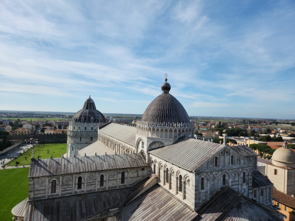 ピサの斜塔の隣にある礼拝堂とドゥオーモ。こちらももちろん塔の上から見ることができます。