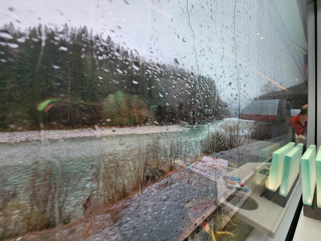 気になる氷河急行のパノラマビューですが、私が乗車した日はめちゃくちゃ天気が悪く、景色はほとんど楽しめませんでした。😭