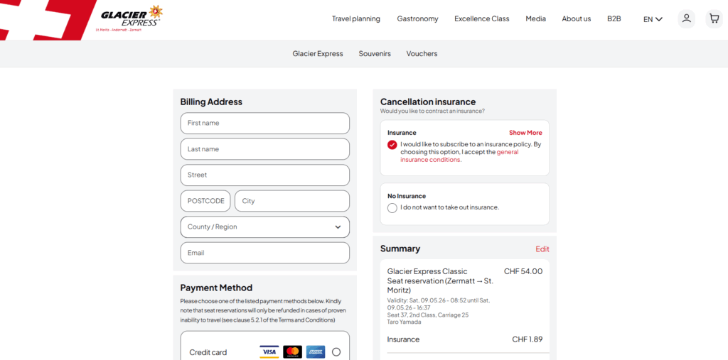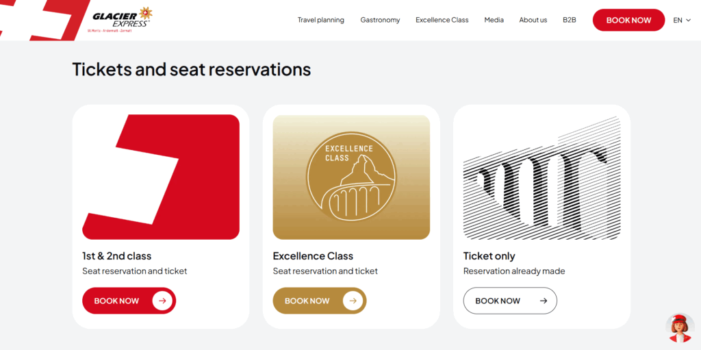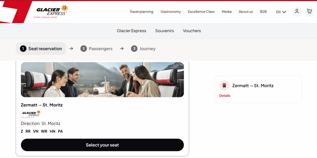 ※2025年に氷河急行の公式予約サイトのUIが刷新されました。本記事は最新画面をもとに、予約手順を画像付きで解説しています。
