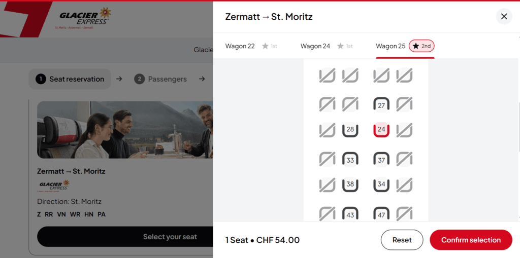 スイストラベルパスを使用して氷河急行に乗る場合も、ゲストで問題ありません。