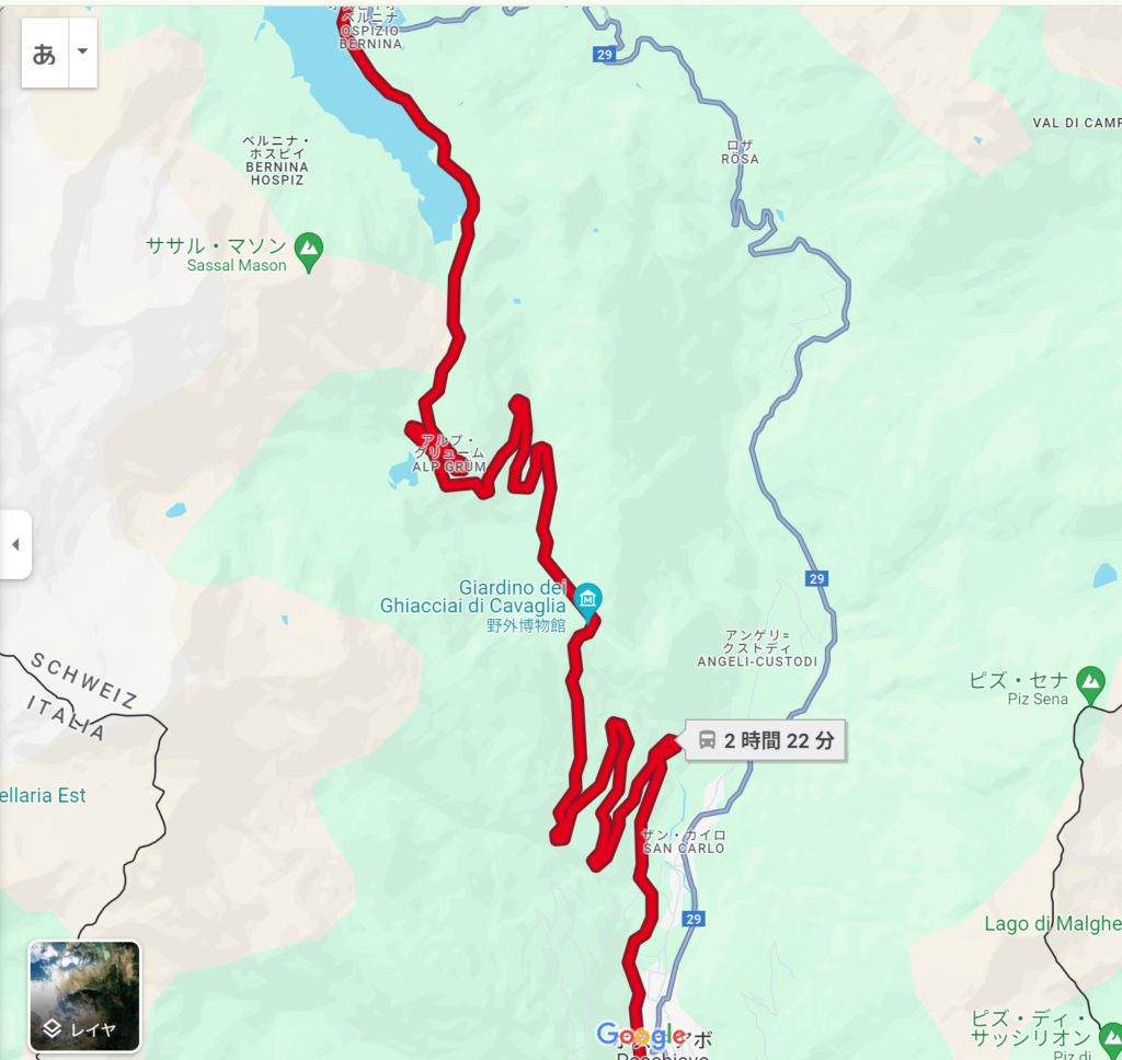 それに対してベルニナ急行は比較的短めの乗車時間ですので、比較的予定的にも軽い感じで乗車できるかと思います。